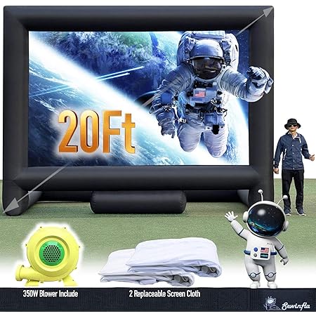 Amazon Com Sewinfla 20ft Inflatable Movie Screen With 2 Screen Cloth Front And Rear Projection Blow Up Outdoor And Indoor Projector Screen For Party Easy To Set Up Electronics